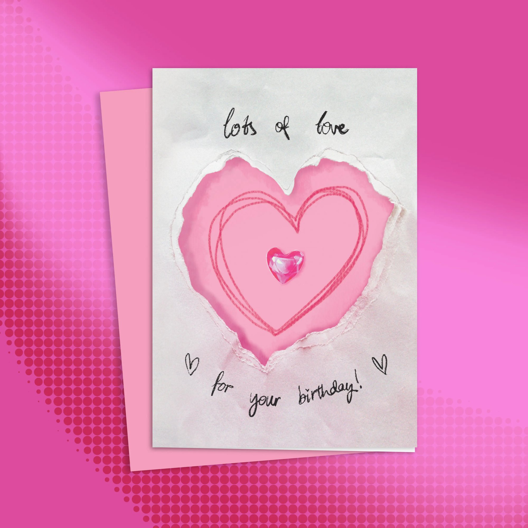 Pink peel-stick envelope included. Proudly without plastic sleeve. Blank inside.